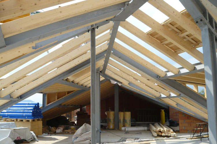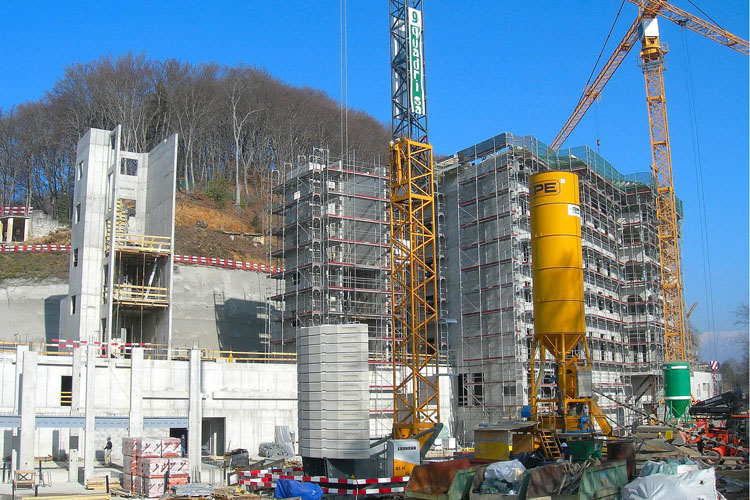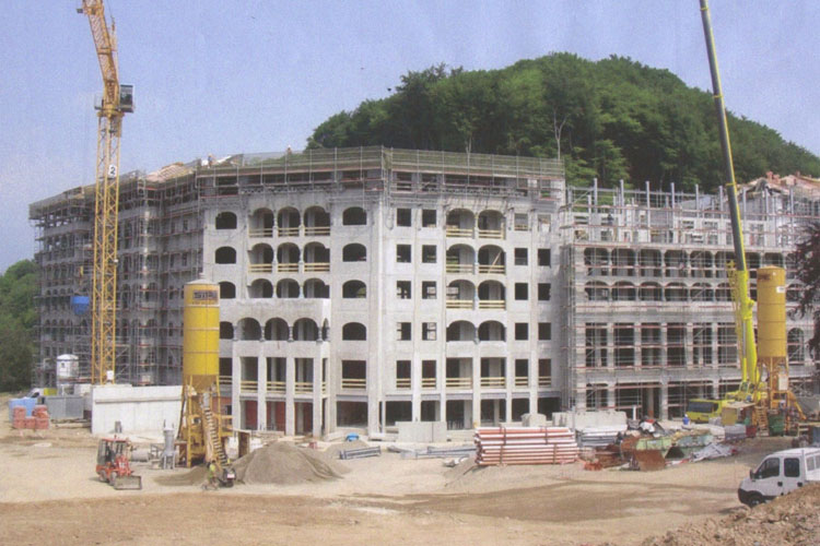 Multistorey building with bridge over the old building