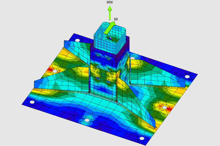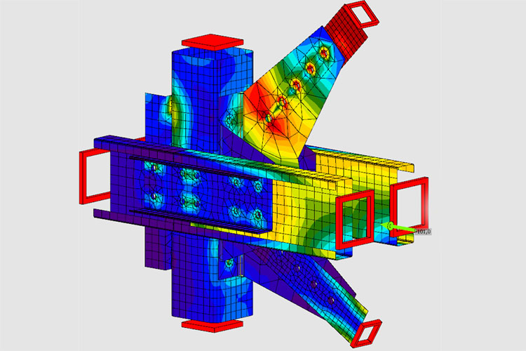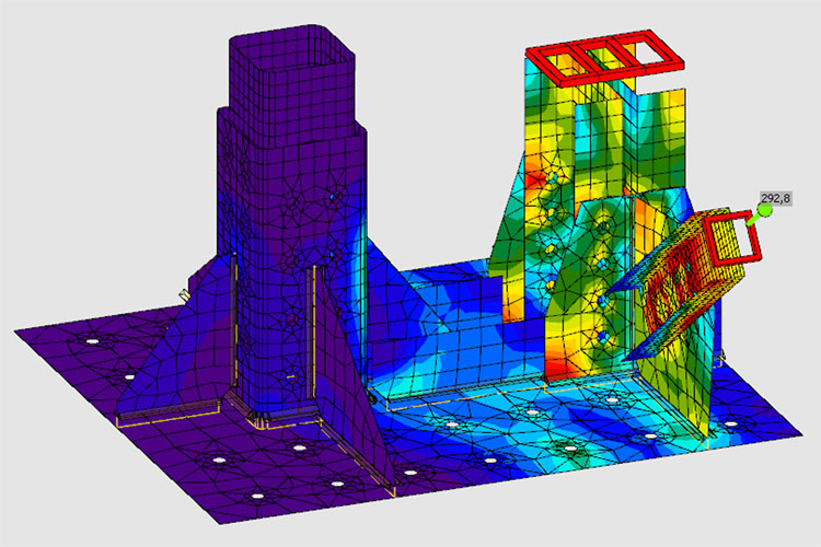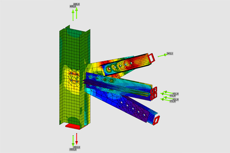 Analysis of stress, strain, stability and code checks with finite element analysis of all the structural steel nodes
